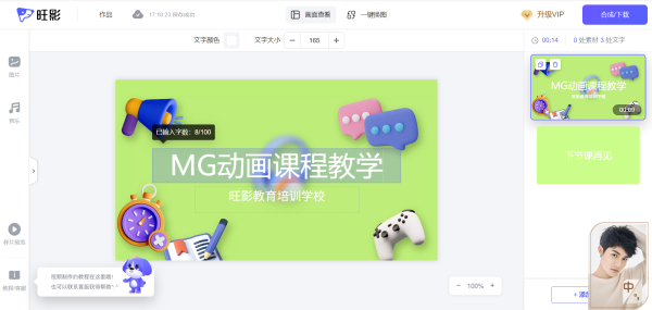 旺影模板丰富,且还在持续更新中,微课片头制作就是如此简单,有需要的老师朋友可以来旺影体验不一样的视频创作,所有操作实时同步存储云端,手机端也可以直接下载旺影App快速创作视频,可以满足大家随时随地创作视频的需求!