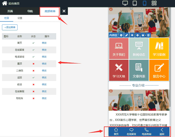 第三步:半岛外围网上直营编辑。编半岛外围网上直营内容包括包括:banner图片、网站栏目。云指建站的样板已经有自带的栏目了,大家根据自己的需求来修改一下就可以了。一般情况下,手机企业站的栏目包括:关于我们、产品展示、新闻动态、在线留言、联系我们等。