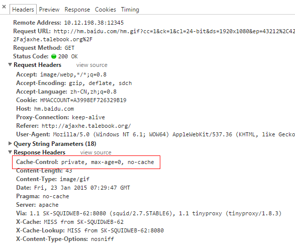 Cache-control: private 意味着这个文件对不同的用户是不同的。只有用户自己的浏览器能够进行缓存,公共的代理服务器不允许缓存。