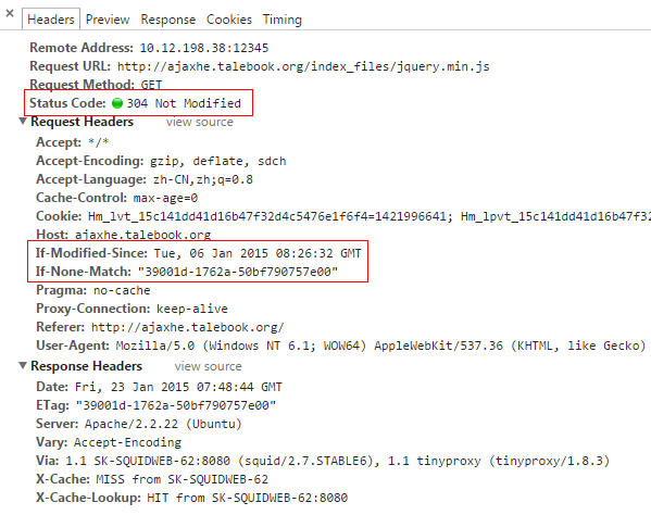 1. 浏览器:Hey,我需要jquery.min.js这个文件,如果是在 Tue, 06 Jan 2015 08:26:32 GMT 之后修改过的,请发给我。