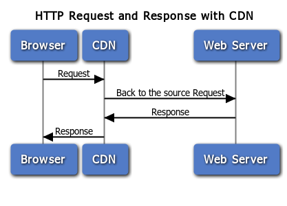 如果中间加上一层CDN,那么用户浏览器与服务器的交互如下: