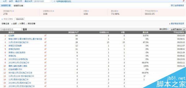 大家不要以为这是PS的哈,这都是11月2日微红包的真实数据,再来看看来自百度统计的当日关键词统计。