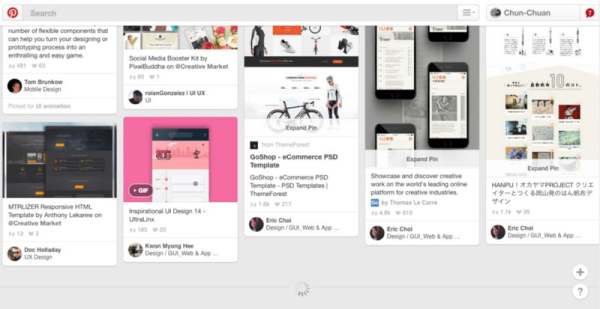 Infinite Scroll架构也相对扁平,适合展示相同阶层架构的东西,而图片就是最好的内容物,因为视觉的信息比较文字更快被人所接收,我们总是能很扫射完图片,Pinterest就是利用Infinite Scroll的特点,不停给予各式图片,供设计师快速找寻灵感、给予源源不绝的刺激。