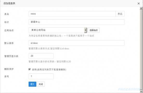 注:添加信息表后,需要刷新后台界面,才能在内容管理中看到新的信息表。